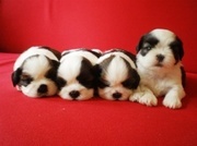 ลูกชิสุสายเลือดแชมป์ มีใบเพ็ดดีกรีเต็มใบ น่าตาน่ารัก มาร์คหน้าขาว มี 14 ตัวให้เลือกค่ะ(เป็นชุดในรูปนี้ทุกตัว)