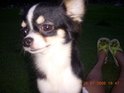 พ่อพันธุ์ชิวาวาขนยาว Spring เปิดรับผสม หัวกลมสวย สีดำ-ขาว มีมาร์กกิ้งสีขาวกลางหัว มีคิ้ว ตัวเล็กเล็ก น้ำหนักเพียง 1.2 กก. มีใบเพ็ดรับรองคุณภาพจากสมาคม ถ่ายรูปให้ดูตอนติด ราคา 2500 บาท และรับเทิร์นหากไม่ติด ติดต่อ เอี่ยว 086-5641717 , 086-7333184 [email protected]