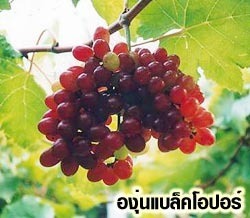 มีองุ่นพันธุ์ แบล็กโอปอไร้เมล็ด ลูสเพอเรทไร้เมล็ด ไวท์มะละกา และป๊อกดำ