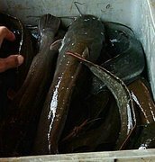 พ่อพันธุ์ปลาดุกยักษ์ รัสเซีย คัดสายพันธุ์ดี ขนาดน้ำหนัก 1.5-3.5 กก.ต่อตัว ราคา กก.ละ 45-50 บาท โทร 089-9493221 , 086-8786557