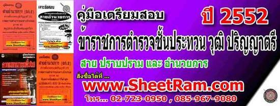 คู่มือเตรียมสอบ แนวข้อสอบ ข้าราชการ ตำรวจชั้นประทวน วุฒิ ป.ตรี ปี 2552 จาก SHEETRAM.COM http://www.SHEETRAM.com">WWW.SHEETRAM.com ร้านชีทออนไลน์ของชมรมลูกพ่อขุนประยุกต์ผู้ผลิตชีทสรุป-เฉลยข้อสอบประกอบ การเรียนของมหาวิทยาลัยรามคำแหง