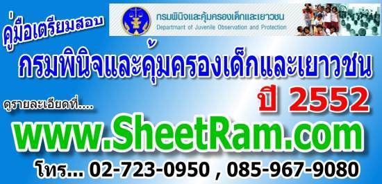 คู่มือเตรียมสอบ แนวข้อสอบ กรมพินิจและคุ้มครองเด็กและเยาวชน ปี 2552 จาก SHEETRAM.COM WWW.SHEETRAM.com ร้านชีทออนไลน์ของชมรมลูกพ่อขุนประยุกต์ผู้ผลิตชีทสรุป-เฉลยข้อสอบประกอบ การเรียนของมหาวิทยาลัยรามคำแหง
