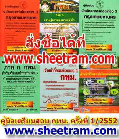 (ในเวลาทำการร้าน 8.00 น. – 21.15 น. ) คู่มือเตรียมสอบ กรุงเทพมหานคร (กทม.) 1/2552 จาก SheetRam.com 1. คู่มือสอบ ภาค ก.ระดับ 3 กรุงเทพมหานคร (NV) ราคาพิเศษ 145 บาท รหัส NV105