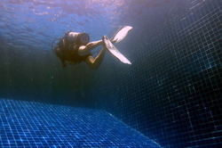 2. ภาคปฏิบัติในสระว่ายน้ำ (เรียนที่ชมรมฯในกรุงเทพฯ สระส่วนตัวในร่ม สระเกลือทะเล ไม่มีคลอรีน ลึก4.2เมตร)