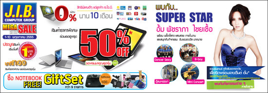 J.I.B. COMPUTER GROUP จัดมหกรรมไอทีครั้งยิ่งใหญ่ ลดกระหน่ำสูงสุด 50% ในงาน  J.I.B. MEGA SALE 2012 ครั้งที่ 1  พร้อมขนโปรโมชั่นมาลดพิเศษ ตั้งแต่วันที่ 1-10 พฤษภาคม 2555 ณ ลานโปรโมชั่น ชั้น 1 ศูนย์การค้าพันธ์ทิพย์พลาซ่า ประตูน้ำ