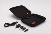 connect the black input cable with usb cable,and then put the usb into the ac-dc adaptor. during charging, the green led on the adapter will turn on,