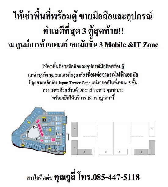 ให้เช่าตู้ขายมือถือ เกตเวย์ เอกมัย ติดต่อคุณ จูลี่ 085-447-5118