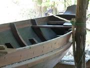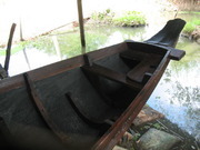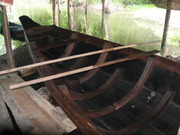 It made of a big tree. It is 2 meters wide and 6 meters long. The boat owner is an old person.