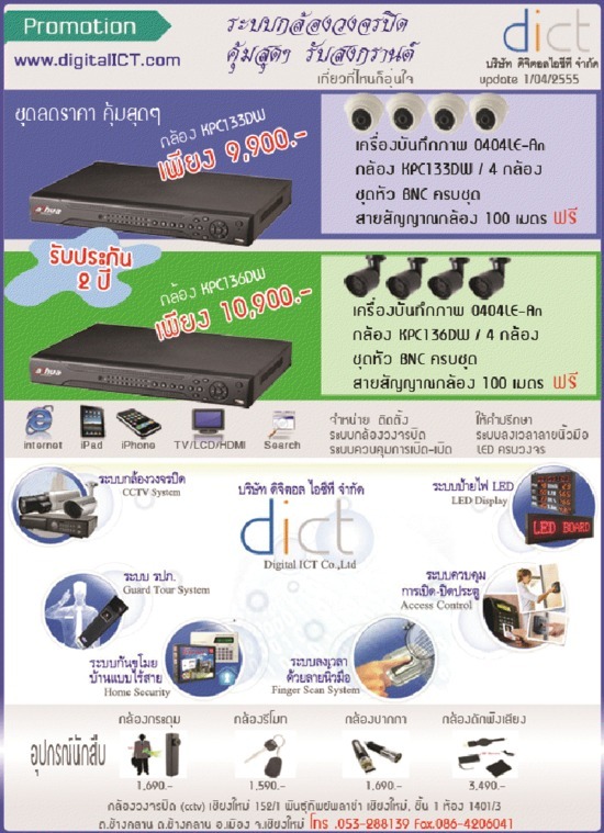 | ติดต่อ: | บริาษัท ดิจิตอล ไอซีที จำกัด | อีเมล์: | |