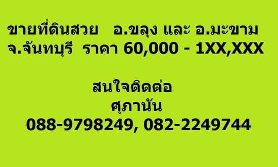 ขายที่ดินสวย จังหวัดจันทบุรี อ.ขลุง และ อ.มะขาม ที่ดินเปล่า สวนทุเรียน ราคาไร่ละ 60000 -1XXXXX บาท
