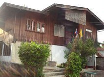 เป็นบ้านสองชั้นกึ่งปูนกึ่งไม้ สองห้องนอน