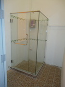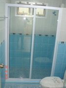 ฉากกั้นอาบน้ำ รุ่นใหม่ล่าสุดกระจก Temper glass 6 mm. ใส รุ่นเปลือยเลื่อน 150x185 cm. ราคา 13,000 บาท