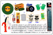 กรรไกรตัดเหล็ก, เกียงโป้วสี, เกียงขัดมัน, กระดาษกาว, เทปกาว, กระบอกอัดจารบี, ปืนฉีดลม, หัวเติมลม, สายลม,