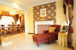 บ้านสวยภายนอก มีบ่อน้ำตกส่วนตัว ,ศาลาพักผ่อน ตกแต่งสวนรอบบ้าน พร้อมด้วยวอล เปเปอร์และผ้าม่านหรูหรา บันไดและพื้นชั้นบนใช้ไม้จริง ห้องนอนใหญ่โอ่โถ่ง โปร่ง โล่ง สบาย มีห้องน้ำในตัวทุกห้อง ส่วนห้องนอนด้านล่าง มีระเบียงกว้าง มองเห็นน้ำตกและวิวสวน แยกห้องครัวยุโรปและครัวไทย โครงการเน้น ให้ความสำคัญ ความปลอดภัย ภายในบ้านติดตั้งสัญญาณกันขโมย ปกกันการบุกรุกและโจรกรรม พร้อม กล้องวงจรปิดทั่วโครงการ ประตูป้อมยาม 2 `ชั้น ห้องครัวติดตั้งระบบ smoke detector จะมีสัญญาณเตือนเมื่อตรวจพบว่ามีควัน หรือไฟ, มีระบบถังน้ำสำรองอัตโนมัติ พร้อมสิ่งอำนวยความสะดวก มี Sport Club ทันสมัย สระว่ายน้ำระบบเกลือขนาด 4 step พร้อมสไลเดอร์ขนาดใหญ่,ห้องออกกำลังกาย,ซาวน่า แยกชาย หญิง,สนามบาส,น๊อกบอร์ด ตู้ATM และร้านกาแฟดอยช้าง