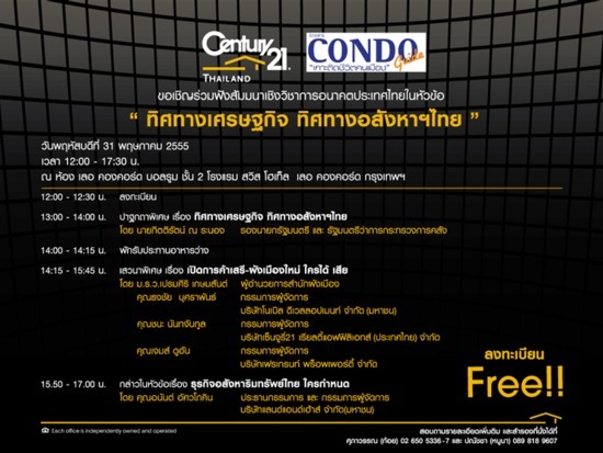 ลงทะเบียนได้ที่ >> http://www.century21.co.th/seminar/