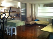 The condo unit is 80 sqm, 1 spacious bedroom, 1 bathroom, 1 kitchen and living area. Fully furnished with built in furniture, ready to move in.