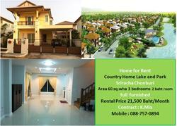 Home for Rent ให้เช่าบ้านเดี่ยว COUNTRY HOME Lake & Park ศรีราชา ชลบุรี ฟรี TrueVision and Internet