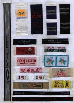 รับทำ ป้ายยี่ห้อเสื้อผ้า ป้ายปกคอเสื้อ Label เลเบิ้ล ลาเบล เลเบล ทุกชนิด ป้ายทอ ป้ายพิมพ์ ป้ายสกรีน ป้ายกระดาษ ป้ายหนัง ป้ายบอกราคาสินค้า และ ป้ายทุกชนิดตามความต้องการของลูกค้า นอกจากจะทำ ป้ายทอ ป้ายคอเสื้อ ป้ายยี่ห้อเสื้อผ้า label เลเบิ้ล ลาเบล เลเบล แล้ว ทางเรายังจำหน่ายสินค้าอย่างอื่นอีกเช่น กระดุมเสื้อ ผ้ากาววีราเน่ อาร์มเสื้อ เสื้อยึด เสื้อโปโล และอื่นๆที่เกี่ยวกับการ ทอผ้า สกรีน ปัก เป็นต้น