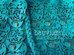 กระเป๋าแฟชั่น Vivian พร้อมส่ง สีฟ้าสดใสดีไซน์เก๋ไม่ซ้ำใคร ผลิตจากหนัง PU คุณภาพดี โดดเด่นสะดุดตาด้วยหนัง PU ฉลุลายหัวกะโหลกและสายสะพายสีฟ้าที่บิดเป็นเกลียวเชือกสวยงาม ช่องใส่ของด้านในบุด้วยผ้าเนื้อดีแข็งแรงทนทานพร้อมรับการใช้งานค่ะ