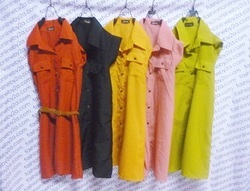 เดรส ผ้ายืดเนื้อนิ่มลายขวาง พับแขนแต่งสี รอบอก 32-36 นิ้ว ความยาว 30 นิ้ว
