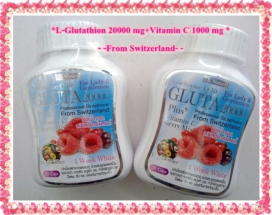 แอลกลูต้า ไธโอน L-Glutathion 20000 mg + Vitamin C 1000 mg From Switzerland ต้านอนุมูลอิสระได้ดีเยี่ยม