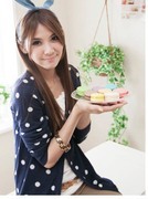 catworld เสื้อ cardigan ผ้า knitting ตัวยาว ทอลายจุดในตัว สีน้ำเงิน ,