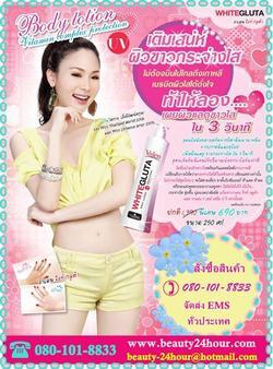 โลชั่นบำรุงผิวขาวใส พร้อมกันแดดสไตส์ สาวเกาหลี เปลี่ยนผิวกายให้สว่าง กระจ่างใสได้ในพริบตา! เพียงแค่ทาเท่านั้น ไม่ว่าจะใส่ชุดไหนๆ จะใส่สายเดี่ยว ขาสั้นรับซัมเมอร์ ท้าแดด ท้าลม หรือจะแต่งชุดสวย ออกงานหรูหรา ไฮโซ ก็มั่นใจ๊ มั่นใจ... กระจ่างใส ชุ่มชื้น นุ่มนวล น่าสัมผัส ทาวาเลน ไวท์ กลูต้า 3 วิ เท่านั้นค่ะ!^^