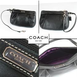 กระเป๋าสตางค์คล้องแขน COACH รุ่น F46484 เป็นกระเป๋าหนังอย่างดีสีดำ ด้านหน้าคาดด้วยเส้นหนังสีดำ พร้อมติด logo ของ COACH ด้านในบุด้วยผ้าซาตินสีม่วง พร้อมช่องใส่ของกระจุกกระจิก 1 ช่อง