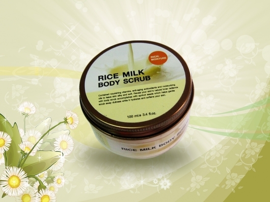 สครับ น้ำนมผสมจมูกข้าวเพื่อผิวกายที่แสนสบาย และนำมาซึ่งความเนียนนุ่มและสว่างกระจ่างสดใส มุ่งเน้นการบำรุงให้กลิ่นแบบสดชื่นสบาย เปรียบประดุจอาหารผิวชั้นดีที่ให้ร่างกายได้รับเข้าสู่ผิวในขณะที่นวดสครับ ซึ่งน้ำนมข้าว เป็นการกลั่นบ่มที่สามารถช่วยคืนฟื้นพลิกผิวเพื่อความ แข็งแรง และความขาว และ ความสว่างกระจ่างสดใส และ กลิ่นหอมรัญจวนจิตใจให้อารมณ์แห่งความบริสุทธิ์ โดยในเนื้อสครับครีมยังอุดมไปด้วยวิตามินอี ที่มีส่วนสำคัญในการต่อต้านสารอณุมูลอิสระให้ผิวยืดหยุ่น ตึง กระชับ สดใส และยังผสานกับเม็ดวอลนัทในเนื้อสครับที่เป็นธรรมชาติได้ปลดปล่อยพลังงานของ วอลนัทออกมานวดบำรุงทันทีที่ได้นวดขัดสครับบำรุง พร้อมขจัดเซลล์ผิวที่เสื่อมสภาพบนร่างกายได้อย่างอ่อนโยน ผิวใสนุ่ม ผุดผ่องมีน้ำมีนวลอย่างเป็นธรรมชาติให้ทุกครั้งที่นวดมีความสุขและความผ่อน คลาย ความสว่างกระจ่างสดใส และความละมุนละไมผิว สามารถใช้ได้ทุกวัน สมเป็นสครับธรรมชาติอย่างแท้จริง