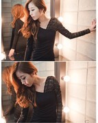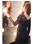 เสื้อผ้าแฟชั่นนำเข้า : dress ชุดเดรสแฟชั่นเกาหลี แขนยาว สีดำ แขนเสื้อผ้าขนสัตว์กำมะหยี่ลูกไม้สีทอง สามารถใส่ออกงานได้ค่ะ เซ็กซี่มากๆ asiastreetfashion