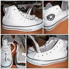 ถูกแบบสุดๆ กับรองเท้า converse เบอร์ 39 สีขาว ใส่ได้ตามชอบ ทั้งหุ้มข้อสูง หรือ พับลงมา ด้านในเป็นตารางหมากรุก สี ดำ เทา ขาว