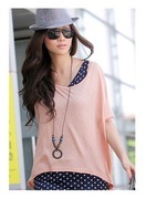 เสื้อแฟชั่น 2 ชิ้น เสื้อกล้ามสีกรมท่าลายจุด เสื้อยืดสีชมพู