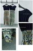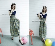 เดรสยาว เสื้อสีกรมท่า กระโปรงพิมพ์ลาย โทนสีฟ้า