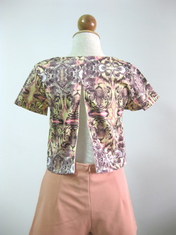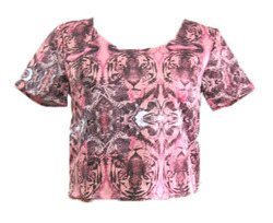 เสื้อcrop ลายเสือ ซิบซ่อนด้านหลัง มีสีชมพู และเหลือง