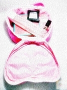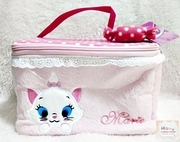 marie cat กระเป๋าสำหรับใส่เครื่องสำอาง หรือของกระจุกกระจิก ทรงกล่อง สีชมพู ผ้านุ่ม