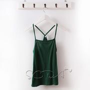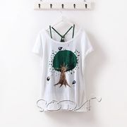 เสื้อยืด น่ารัก ผ้าคอตตอน สีขาว ลายต้นไม้ + สายเดี่ยว สีเขียว