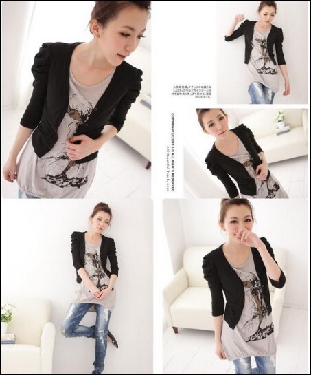 พร้อมส่ง>>เสื้อทับตัวสั้นสีดำไหล่ย่นอินเทรนด์ ใส่แบบติดกระดุมหรือใส่ปล่อยก็ได้ค่ะ
