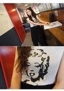 สกรีนลาย มาริลีน มอนโร เก๋ๆ สีดำ ที่ตรงกลางเสื้อด้านหน้า