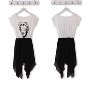 ชุดเดรส หางปลา สุดเก๋ ผ้าคอตตอนสีขาว กระโปงสีดำพริ้ว