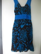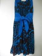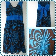 สีโทนฟ้า-น้ำตาล ตรงสาย และ ตรงแถบคาดเอว เป็นผ้าไหมผสม ออกเงา ๆ เวลาโดนไฟจะสวยค่ะ
