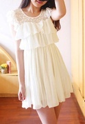 เสื้อผ้าแฟชั่นนำเข้า : ชุดเดรสออกงาน แฟชั่นเกาหลี ผ้าชีฟองอัดกลีบ ชายกระโปรงแต่งระบาย 2 ชั้น สีขาว *มีซับใน มีสายผูกเอว(ผ้าชีฟอง เส้นใหญ่กว่ารูป) asiastreetfashion