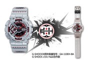 Since its birth in the year 1983, G-SHOCK evolving pursuit of toughness greet 2013, the 30th anniversary. To celebrate it, the special collaboration model "G-SHOCK × ERIC HAZE collaboration model" commemorating the 30th anniversary of the advent. Including the design of the anniversary logo G-SHOCK25, street art guru collaborated with a deep connection for many years, and Eric Hayes. Dial layer of large case and suitable for special model selection is based on the popular GA-110 model, color scheme to fill part of the bezel red dial and logo design, the black. I finished in a brilliant design that shines in the body of the light gray. In addition, the layout of the top and bottom of the belt the star icon to express his identity. It has been a graphic that you want to claim that it is a special model. Anniversary logo stamped on the back, even 30 G-SHOCK further by his own hand. The concept of G-SHOCK brand pursuit of toughness and identity as an artist is a fusion is a special collaboration model appropriate to commemorate the 30th anniversary.