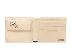 กระเป๋าสตางค์ผู้ชาย Jack Spade เป็นกระเป๋าหนังอย่างดี สีครีม ลายกระเป๋าอาร์ตสุด ๆ ตามแบบฉบับของ Jack Spade มีช่องใส่บัตรต่าง ๆ ได้ 4 ช่อง และช่องสำหรับใส่เศษเหรียญ ขนาด 4 (L) x 3 ½ (H)