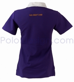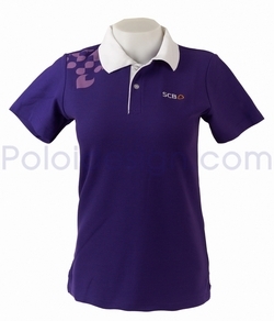 รับผลิตเสื้อโปโลสีม่วง คอปกสีขาว SCB