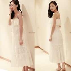 เสื้อผ้าแฟชั่นนำเข้า maxi dress - ชุดเดรสยาว ผ้า cotton ช่วงอกแต่งระบาย จับสม๊อกช่วงหน้าอก สีขาว น่ารักมากๆ ค่ะ asiastreetfashion (พร้อมส่ง)