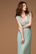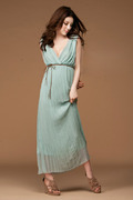 เสื้อผ้าแฟชั่นนำเข้า maxi dress - ชุดเดรสยาว แขนกุด กระโปรงอัดพลีท สีเขียว สวยมาก ใส่ออกงานได้ asiastreetfashion (พร้อมส่ง)
