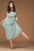 เสื้อผ้าแฟชั่นนำเข้า : maxi dress - ชุดเดรสยาว แขนกุด กระโปรงอัดพลีท สีเขียว สวยมาก ใส่ออกงานได้ asiastreetfashion (พร้อมส่ง)