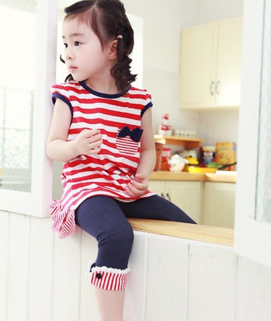 ชุดเสื้อแขนกุดลายทางแดงขาว+กางเกงสี่ส่วน