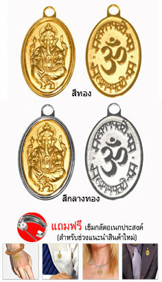 จี้พระพิฆเนศ ทำด้วยวัสดุทองบรอนซ์ญี่ปุ่น (Japan Bronze) ชุบทองและทองคำขาวเคลือบฟอยล์ (Foil)