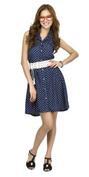 เดรสกระโปรงคล้องคอลายจุด น้ำเงิน